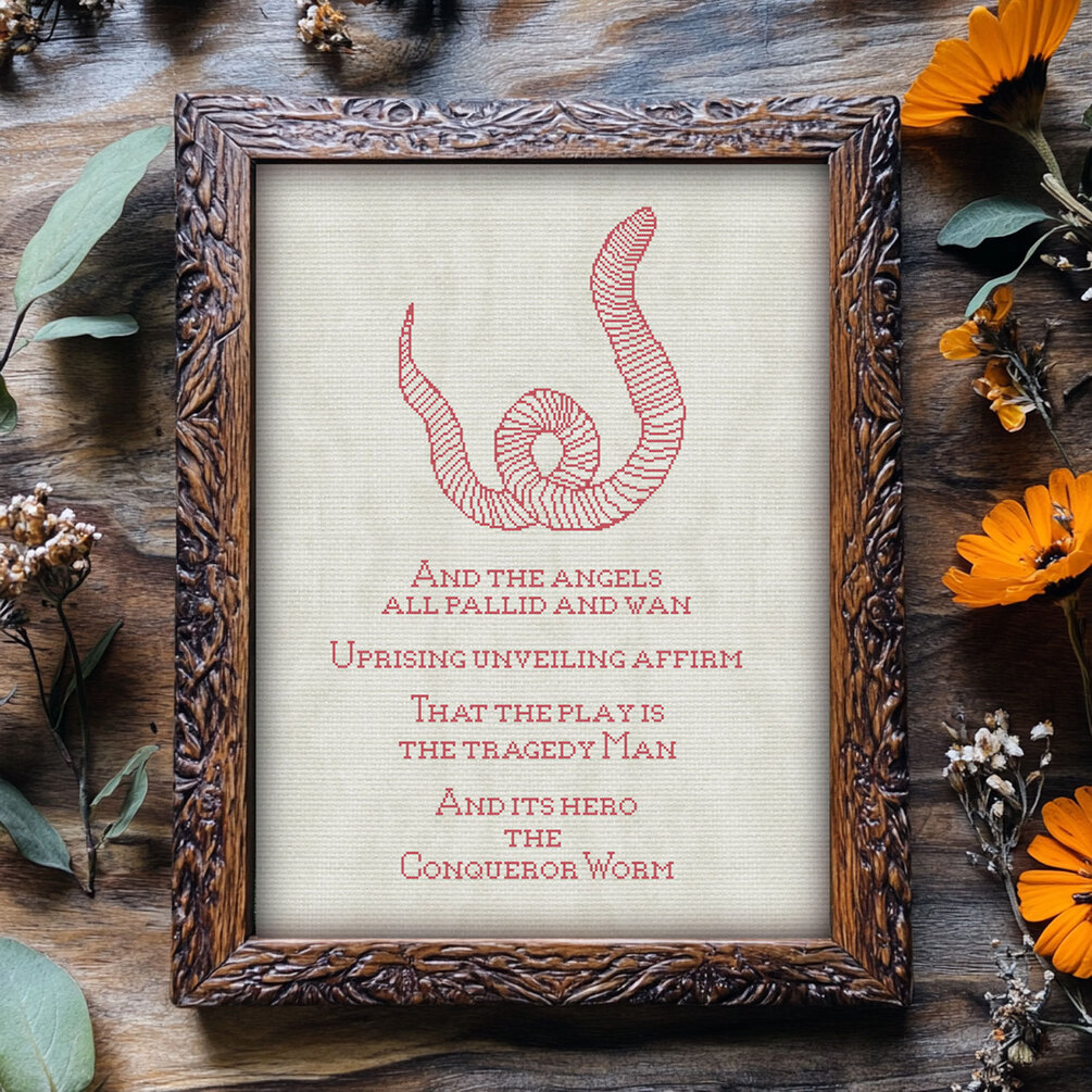 Edgar Allan Poe's The Conqueror Worm excerpt Counted Cross-Stitch Pattern